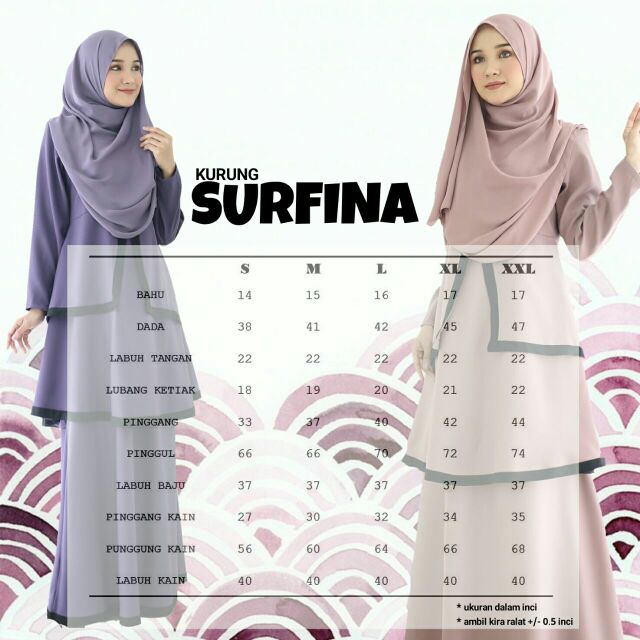 Baju kurung moden kain kembang payung (chiffon dan ada lining, kain satin) pinggang kain: Design kurung moden skirt cutting kembang zip baju di belakang badan zip kain di tepi pinggang kain jenis half getah. Baju kurung pahang mempunyai pesak kembang yang dijahit cantum dengan kekek gantung. Baju kurung moden awie.kembang gitu. Baju kurung pahang mek kembang ibu & anak by mini butik lina. Di belakang baju ✔️ ada poket disebelah kanan baju ✔️ pinggang getah . Bahu 14.5 | dada 38 | pinggang baju 40 | pinggul baju 42 | labuh lengan 22 . Ia dipakai untuk kelihatan slim di bahagian pinggang.